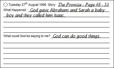 Then, instead of writing down the special verse, I would ask them what happened in the story and then I would write down what they said happened. I usually discussed the story with them, helping them to understand the key parts of the story.